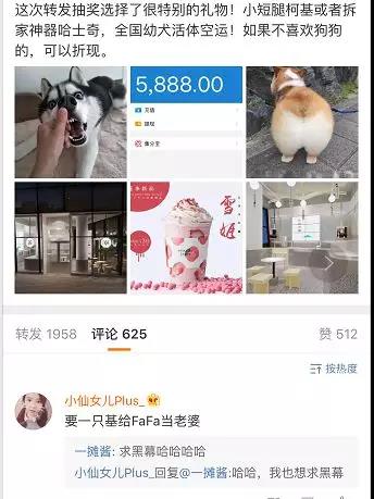 上周,这只兔子还在微博上持续搞事情,转发抽奖送小短腿柯基/哈士奇,还支持全国幼犬活体空运,诚意满到不喜欢狗狗的可以折现。