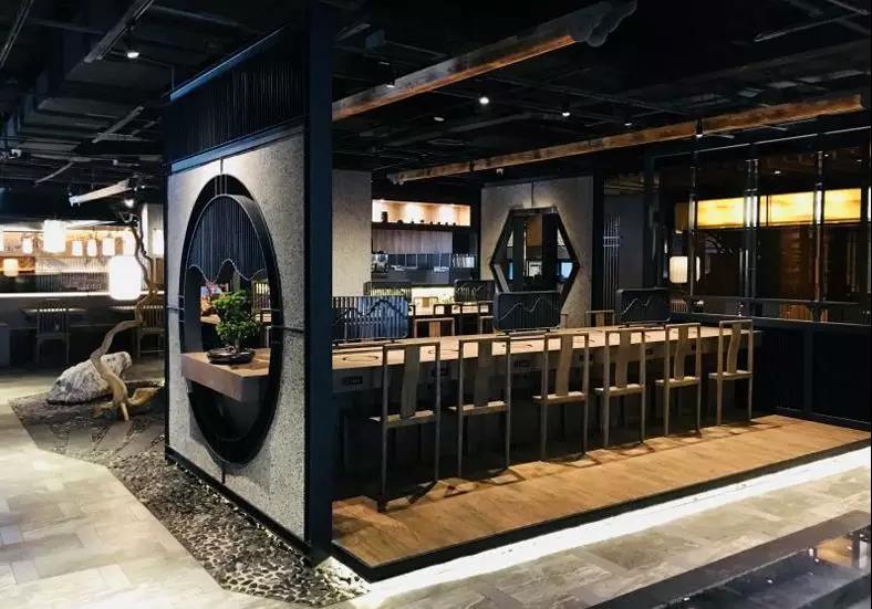 店内更是一步一景、意境悠远。原石和木色、绢灯,组成了呷哺呷哺旗舰店的新中式禅意餐厅环境。